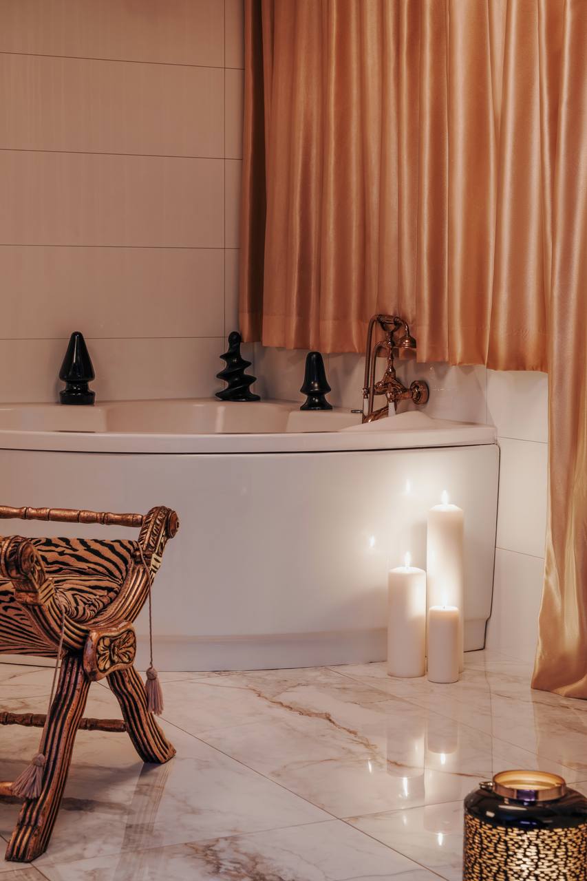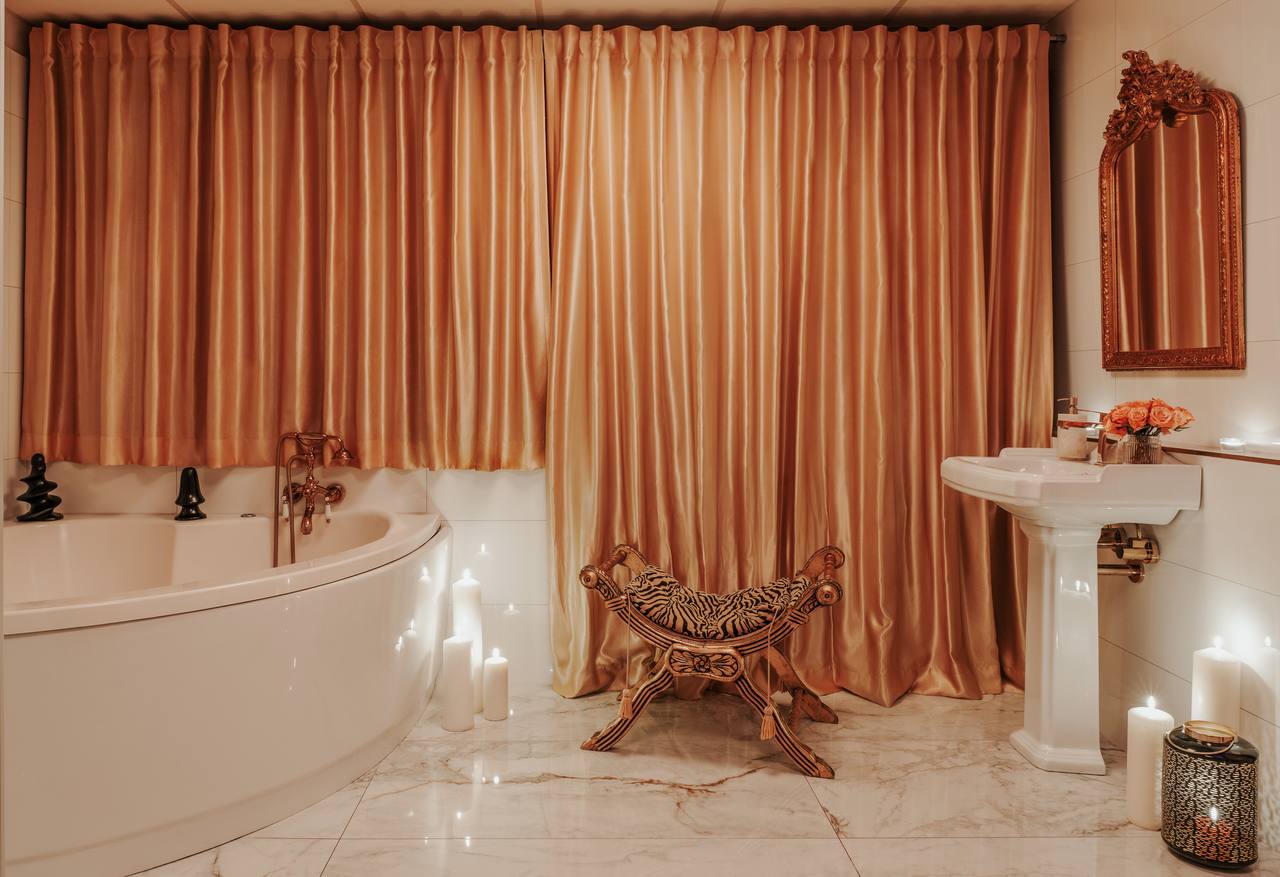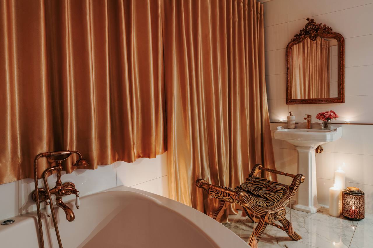 Auch das frisch sanierte Luxusbad (der „Kinky Shower Room“) wurde als zusätzliches Spielzimmer mitgedacht. Neben einer modernen Dusche lädt hier eine große Eckbadewanne zu Spiel und Entspannung ein.